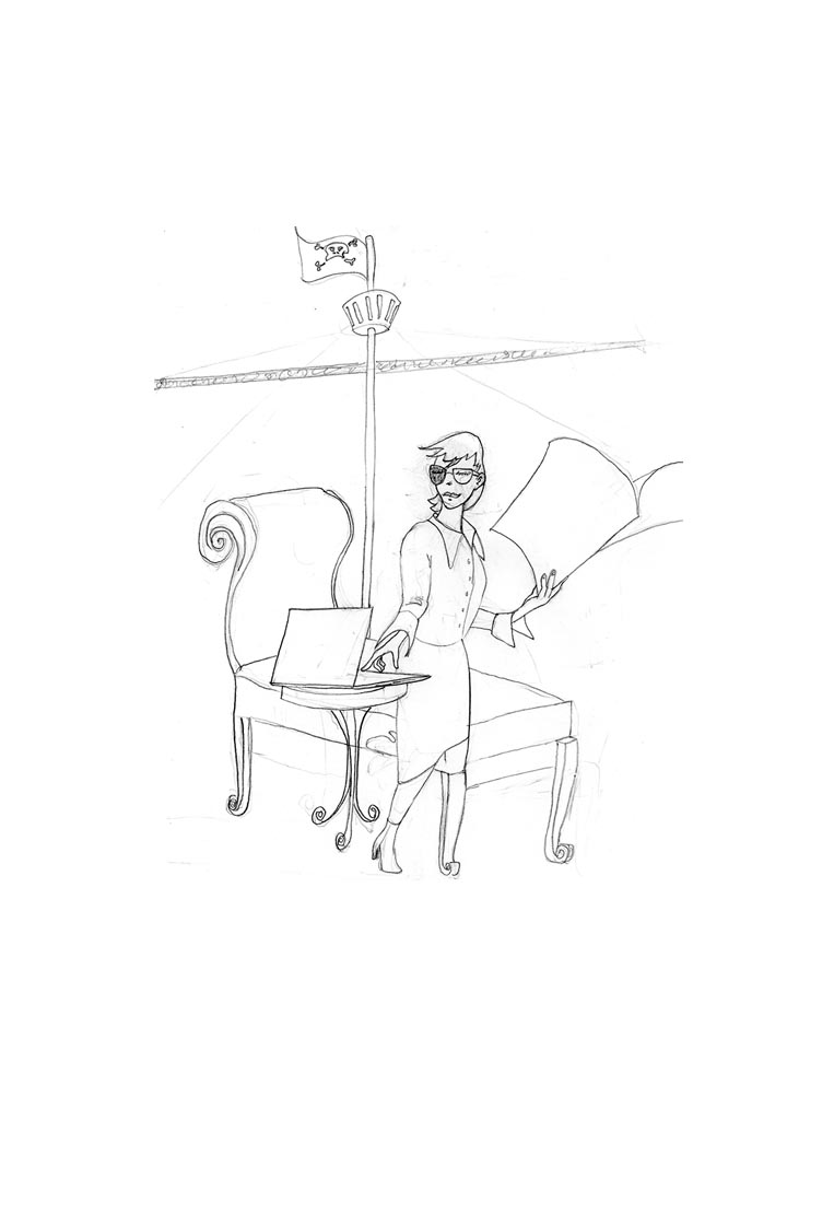 - l'ambiance bateau (mât, vent de les voiles-feuilles de journal, drapeau pirate, éclairage en forme de voiles)