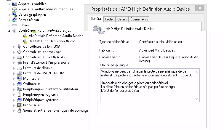 Je n'ai plus de son . Les périphériques triangle jaune. Ci une personne sympa pouvait m'aider doucement (novice).